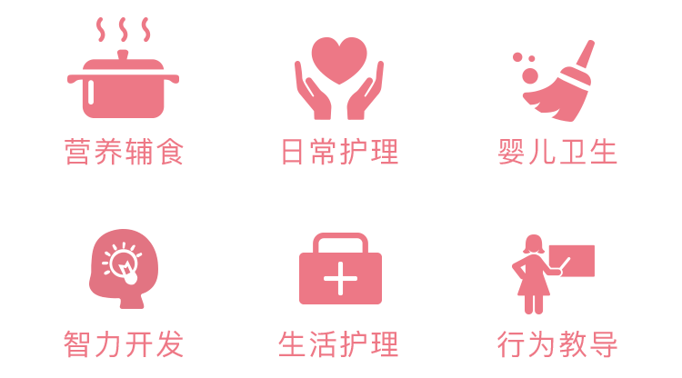 为1个月以上的孩子提供饮食起居,疾病护理,行为启蒙教育,辅食添加等服
